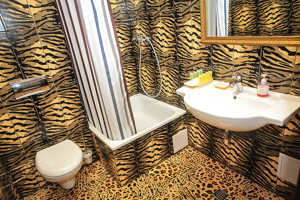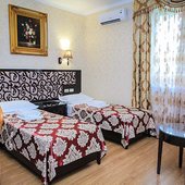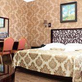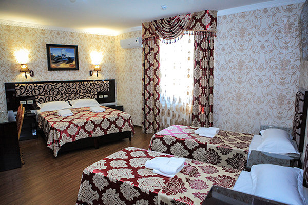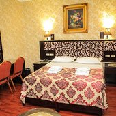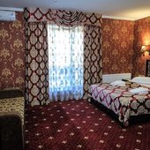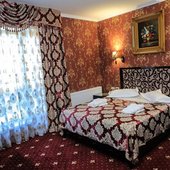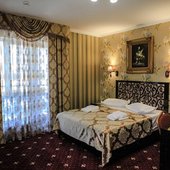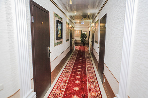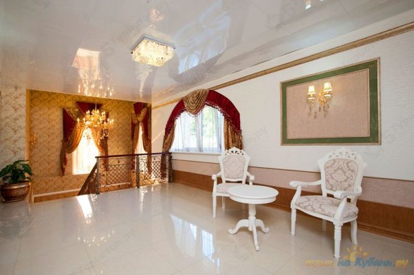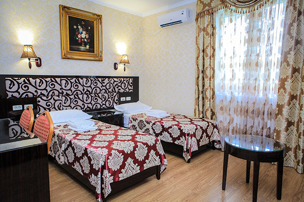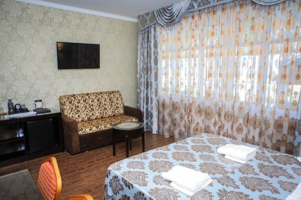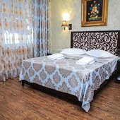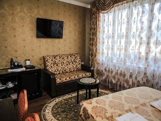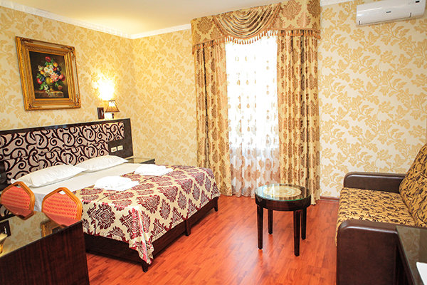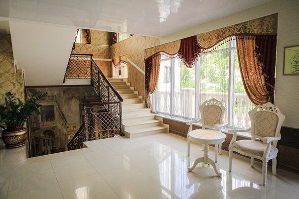 Трехэтажное здание с белоснежными колоннами, арками, балясинами выполнено в классическом стиле и имеет 23 номера различной степени вместимости. Номерной фонд отеля расположен на 2 и 3 этажах. Все номера оборудованы современной мебелью в классических тонах, комплектация номеров включает сплит-системы, мини-холодильники, телефоны, телевизоры. Каждый номер имеет отдельный санузел с туалетными и косметическими принадлежностями и феном.