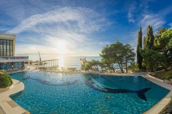 - закрытый бассейн с морской водой (площадь 130 м2), оснащен противотоком, водным каскадом;