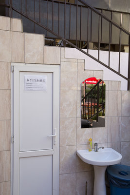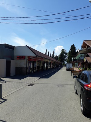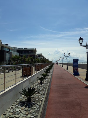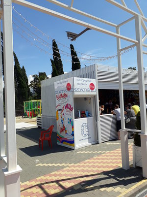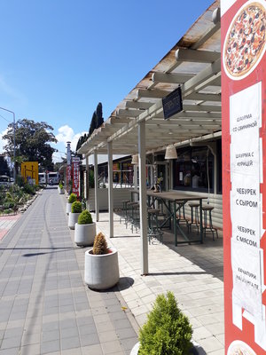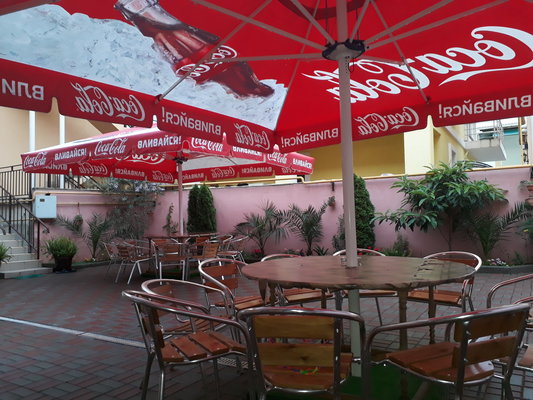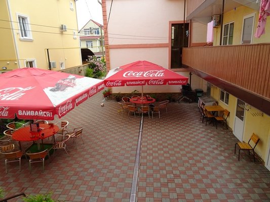 За отдельную плату на пляже выдаются лежаки и зонты. Берег здесь галечный, расстояние до Черного моря — 600 метров.