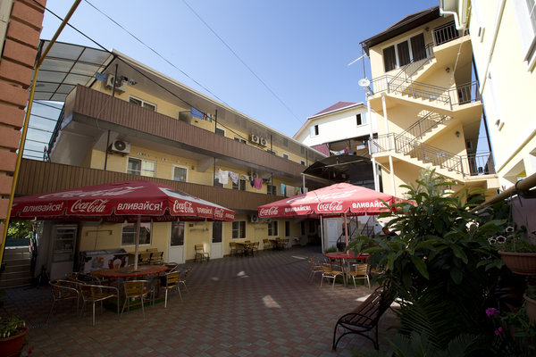 Гостевой дом «Руссо» находится в Адлерском районе города Сочи Краснодарского края. В 600 метрах пляж, в паре километров — курортный парк, в 12—13 километрах — аэропорт и вокзал.