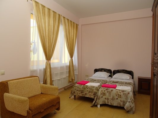 Гостевой предлагает номера эконом-класса, на территории и в номерах, кухня общего пользования и зона отдыха с мангалом, прачечная и детский уголок.