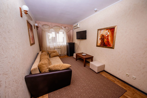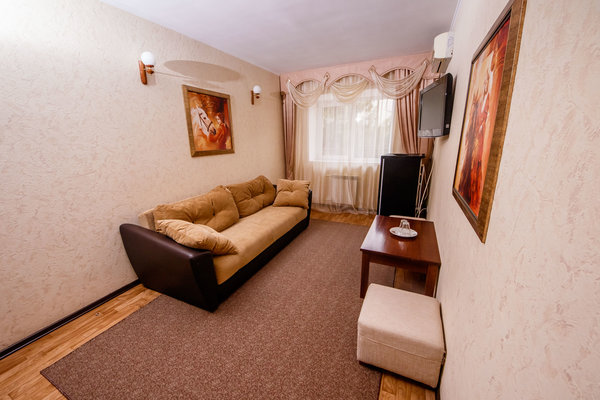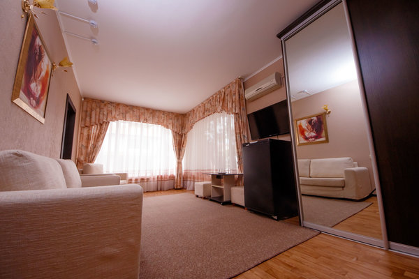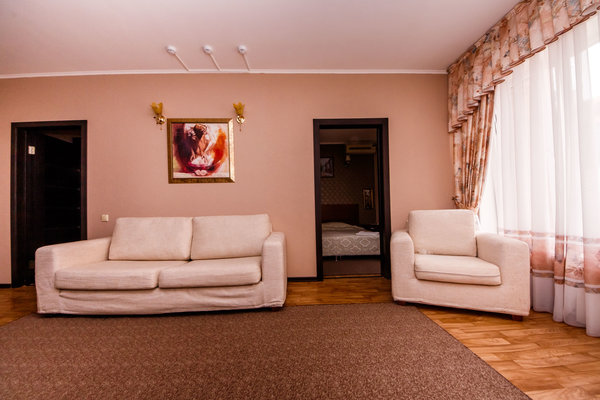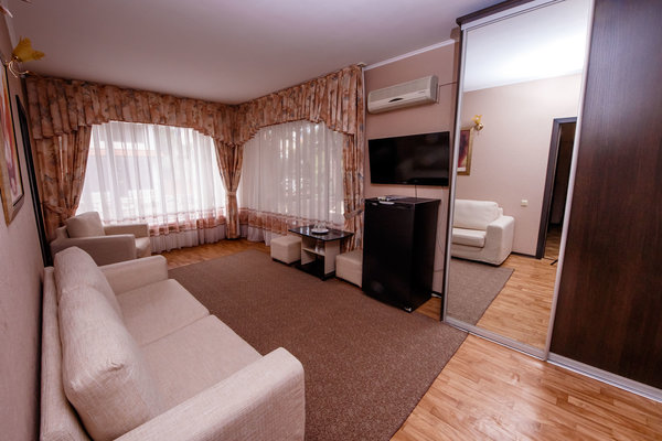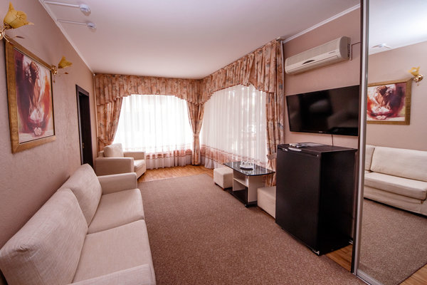 В отеле имеются стандартные однокомнатные номера и двухкомнатные апартаменты класса «Люкс». Во всех номерах находятся две обычные кровати или одна двухспальная, мягкая мебель, вместительные шкафы. Для более приятного проведения отдыха, в гостинице имеется кабельное телевидение, а кондиционер поможет создать наиболее комфортную атмосферу. В каждом номере имеется душевая кабинка или ванна. На территории отеля работает прачечная. Желающие могут попариться в сауне с собственным бассейном.