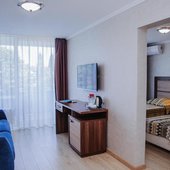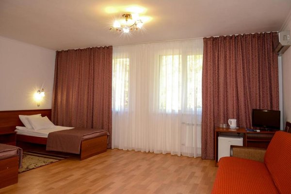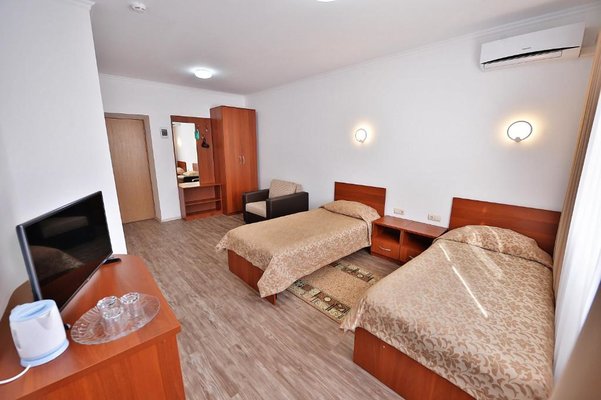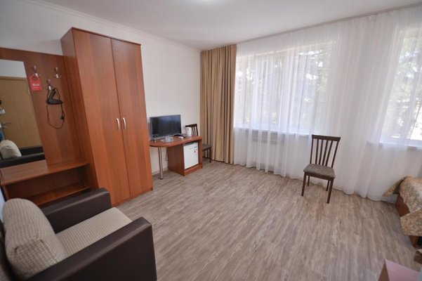 У санатория всего две звезды, но на самом деле ему можно дать все четыре звезды. Санаторий хороший, мой корпус назывался черноморский. Создалось такое впечатление, что корпус только построен. Вся мебель новая, она красивая, номера хорошие. Сам корпус оформлен со вкусом, все кровати новые и удобные, они совершенно не проваливаются. Кондиционер работал хорошо, нашелся новый чайник и телевизор. Все процедуры выполнялись строго по правилам, понравился кислородный коктейль. Питание было хорошим и разнообразным. Вечером проводятся различные мероприятия, я обязательно посещу этот санаторий еще раз.