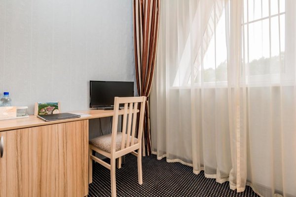 Санаторий представляет собой компактный, современный комплекс, где все необходимые удобства находятся под одной крышей. В главном корпусе размещены комфортабельные номера, лечебно-диагностическое отделение, администрация, бассейн, сауна и турецкая баня. С панорамной смотровой площадки, расположенной над рестораном, открывается захватывающий вид на город.