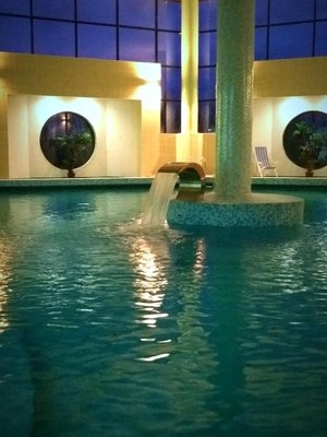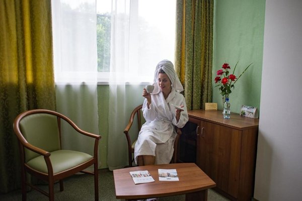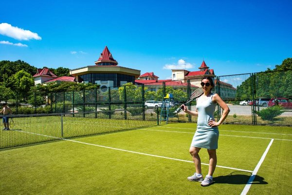 Для активного отдыха и релаксации в санатории есть 17-метровый круглый бассейн с противотоками, джакузи, гейзером и водопадом, а также финская сауна и хамам.