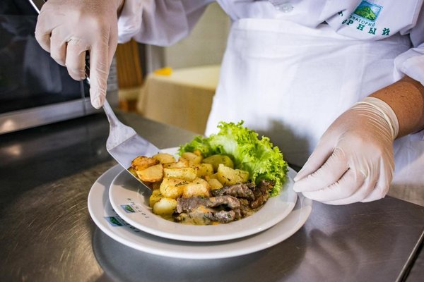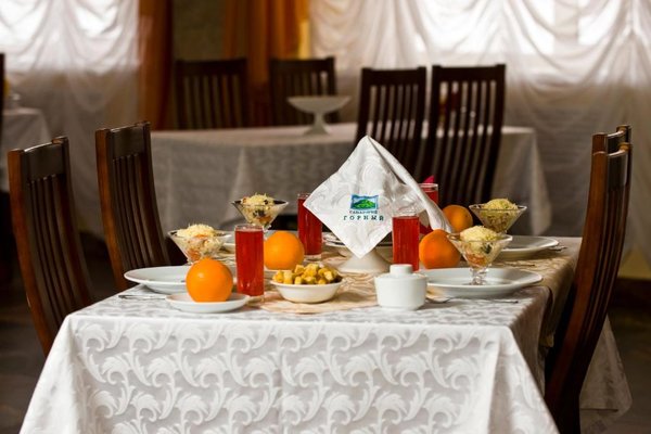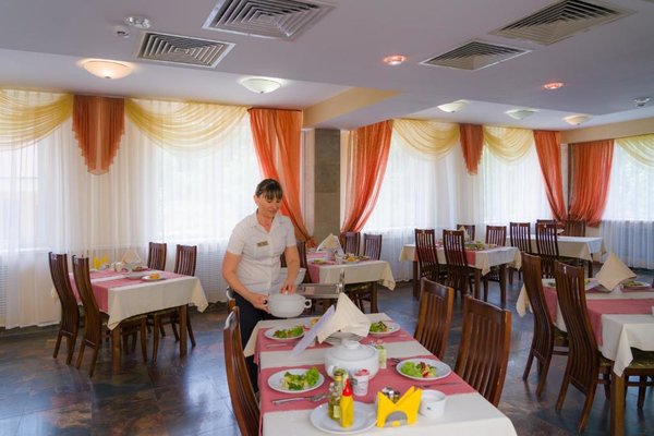 Питание в санатории организовано три раза в день, с учетом индивидуальных медицинских показаний и использованием минеральной воды. Разработанное на 14 дней меню, сбалансировано по содержанию питательных веществ и энергии, и предлагает различные варианты диет: основную, щадящую, белковую или низкокалорийную. Все блюда готовятся из свежих, экологически чистых продуктов кубанских фермеров.