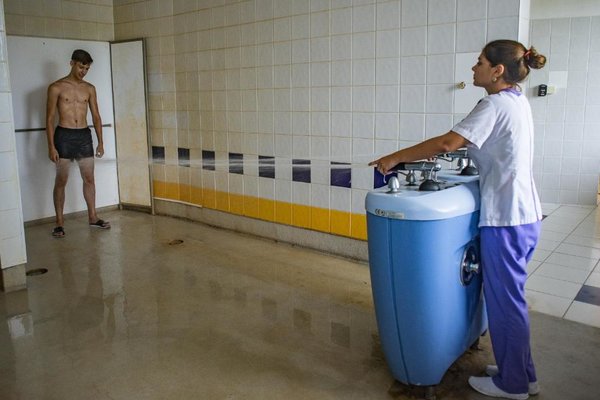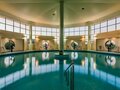 Округлая форма, водопад для профилактики шейно-воротниковой зоны, противотоки, целебные гейзеры, удобные спуски в воду, нескользкие поручни, уютные зоны отдыха и живописный вид из панорамных окон на заповедный лес — все это вы получите, посетив закрытый современный бассейн санатория. Температура воды соответствует требованиям санитарной службы.