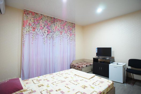 Номера расположены на 2-м и 3-м этажах уютного трехэтажного коттеджа и оснащены всем необходимым для комфортного проживания: удобной мебелью, ванной комнатой с бойлером и душем, ЖК-телевизором со Smart TV, мини-холодильником и кондиционером. Для вашего удобства мы также предоставляем полотенца для бассейна.