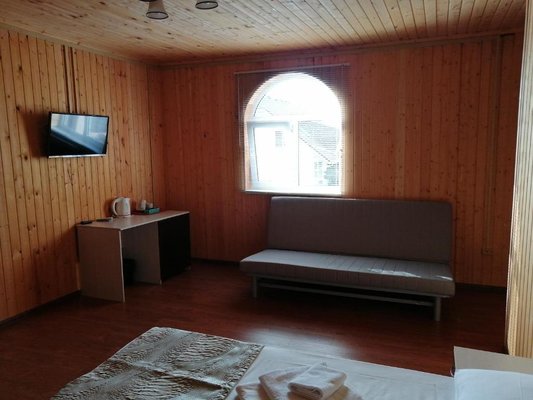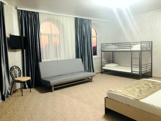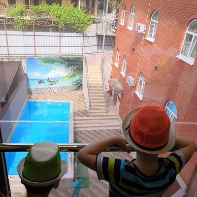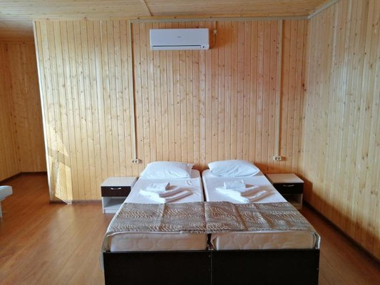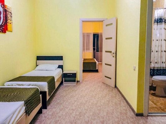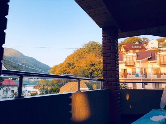 На территории работает столовая с обеденным залом, а также уютный ресторанчик на крыше с великолепной кухней. Гостям также доступен небольшой бассейн с прохладной водой, караоке и парковка. В гостевом доме регулярно проводятся различные развлекательные мероприятия для детей и взрослых. Для малышей предусмотрены прогулочные коляски и стульчики для кормления. В 15 минутах ходьбы от отеля находится красивый оборудованный галечный пляж.
