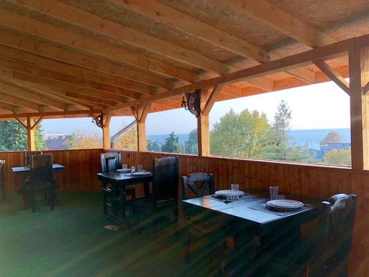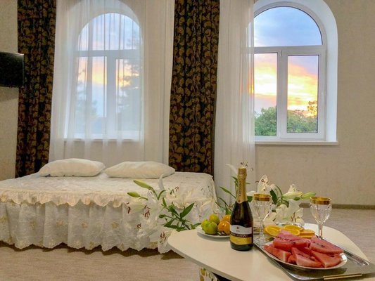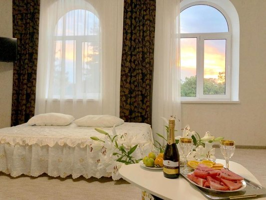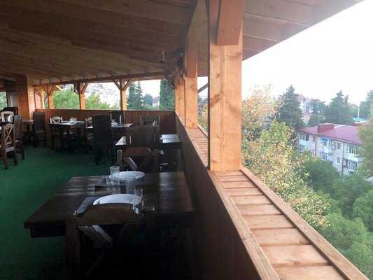 В распоряжении гостей на территории гостевого дома имеется ресторан на крыше с панорамным видом на море. В ресторане представлена европейская, итальянская, русская и кавказская кухня.