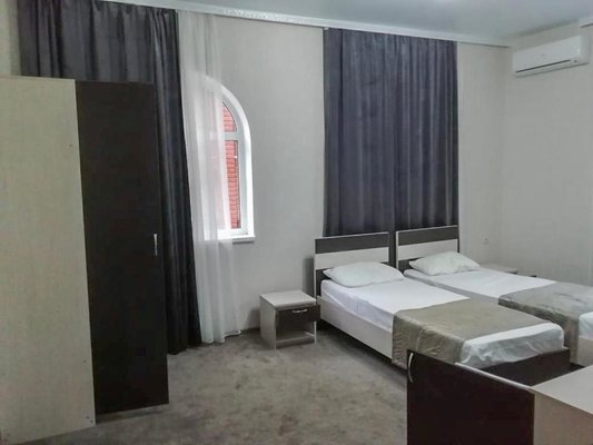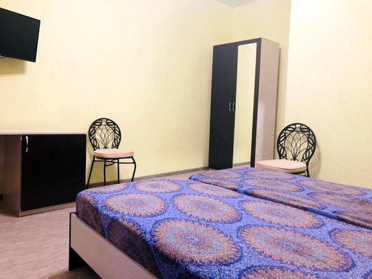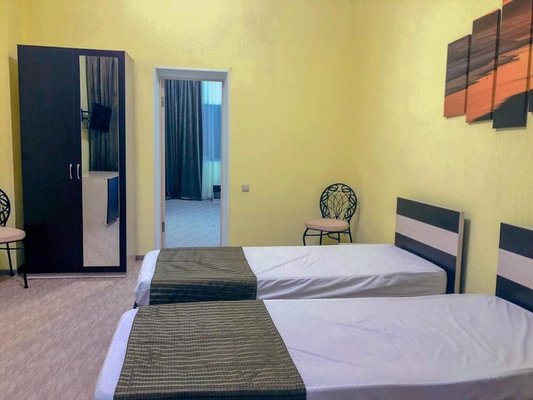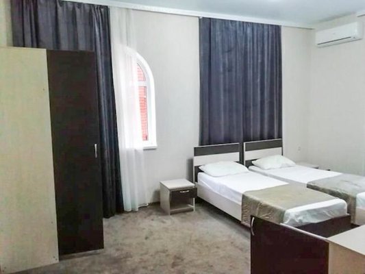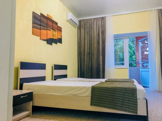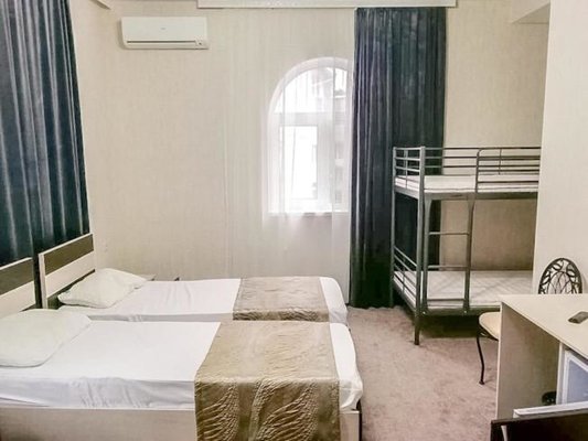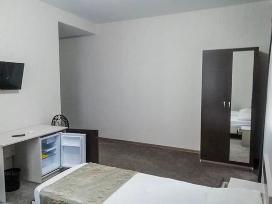 Отель является кирпичным четырехэтажным зданием, расположенным на одной из главных улиц поселка — улице Победы. В распоряжении гостей имеются однокомнатные и двухкомнатные номера с удобствами. В каждом номере есть собственный санузел с душем, кондиционер, электрический чайник, плазменный телевизор и фен.