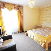 К вашим услугам предлагаются комфортабельные и современные однокомнатные номера категории «Комфорт» и 2-х комнатные номера категории «Люкс». Каждый номер с балконом, оборудован новой, удобной мебелью и укомплектован всем необходимым для беззаботного и приятного отдыха.