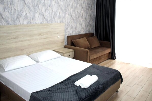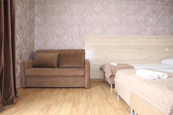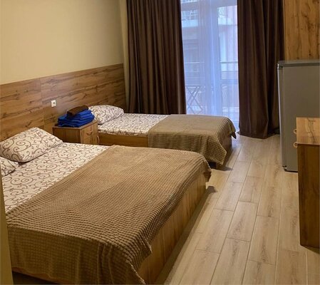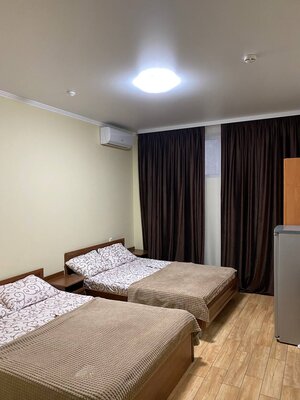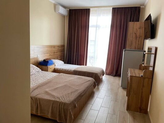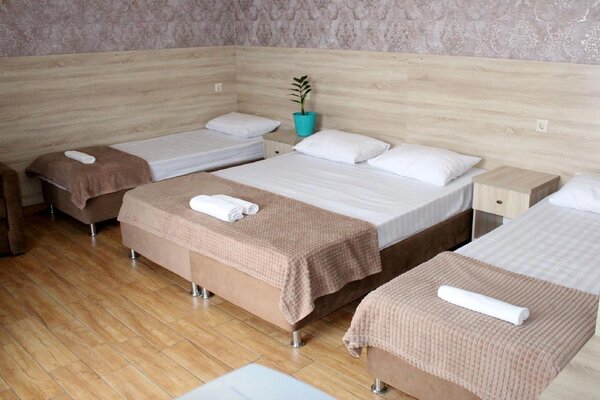 Мы предлагаем номера на 2-6 человек, некоторые с балконами. Все номера оснащены кондиционерами, телевизорами и холодильниками. На территории отеля есть собственная столовая, парковка, мангал, прачечная и Wi-Fi. Пляж в 10 минутах ходьбы.