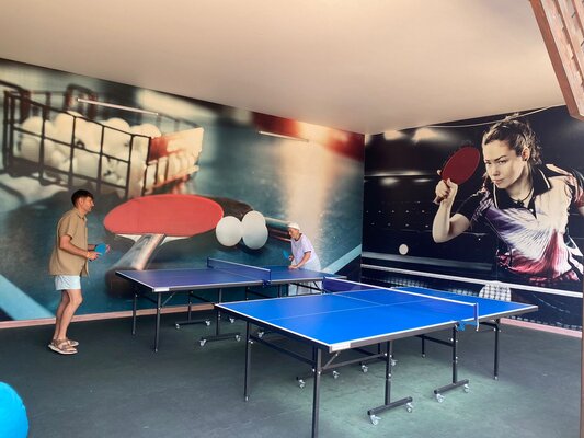 - настольный теннис: ловкость рук и скорость реакции проверяются на столах для настольного тенниса, расположенных в тени деревьев;