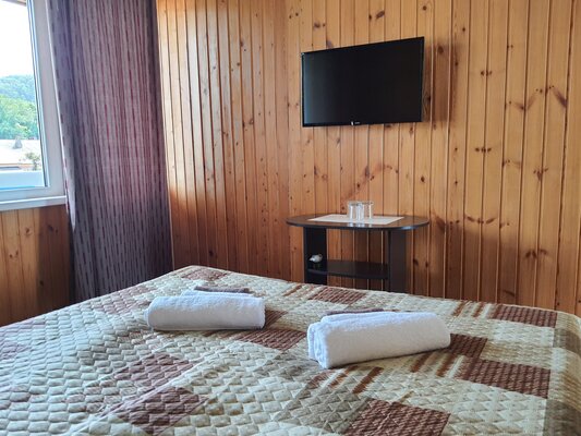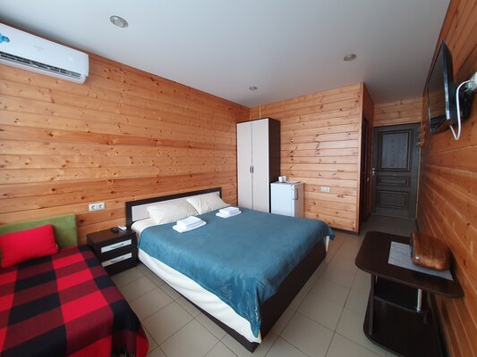 На первом этаже отеля располагаются 2-комнатные апартаменты с собственной ванной комнатой, кухней, кондиционером и прямым выходом к морю. На втором этаже — 1-комнатные номера стандартной категории с видом на море и горы.