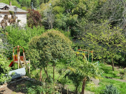 Самолетом до аэропорта Адлер, далее на электропоезде «Ласточка» в направлении «Туапсе-Пасс.» до станции «Лоо», далее пройти 950 м до гостевого дома.
