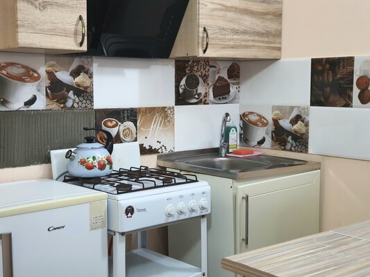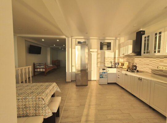 - просторная общая кухня с холодильником, газовой плитой и посудой;