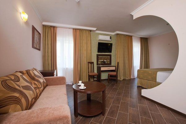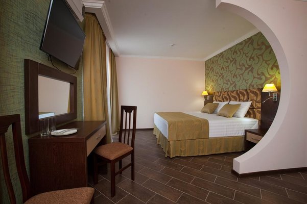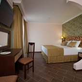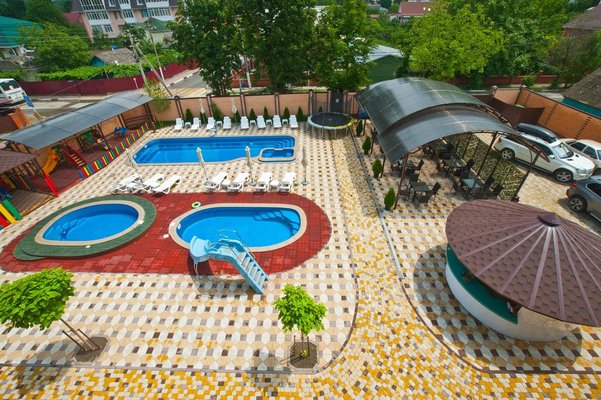 В гостинице гостям предлагается современный номерной фонд со всеми удобствами, качественный сервис, разнообразная развлекательная инфраструктура. Особое внимание уделяется детскому отдыху. Для малышей и подростков предусмотрены разные бассейны, что позволит детям постарше чувствовать себя комфортно и не пересекаться с малышами. Родители смогут удобно расположиться в зоне отдыха, не упуская из вида своих детей, играющих на детской площадке или плескающихся в бассейнах. Бар у бассейна и крытая терраса позволят перекусить непосредственно, не покидая зоны отдыха.
