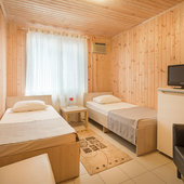 - от аэропорта: автобусом №5 до остановки «Улица Туристическая», далее пешим ходом