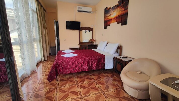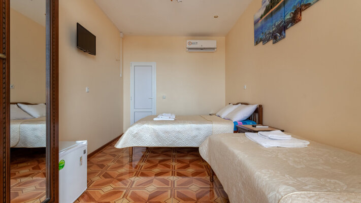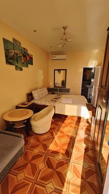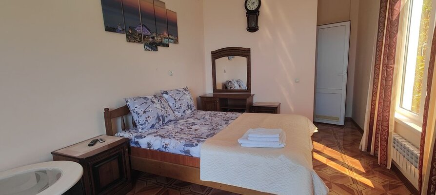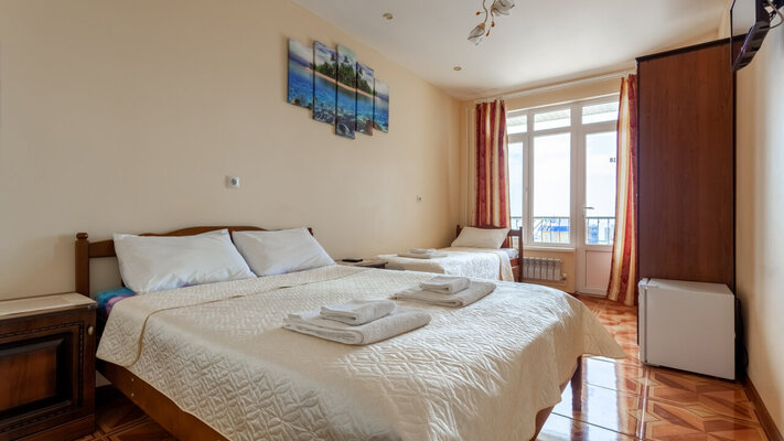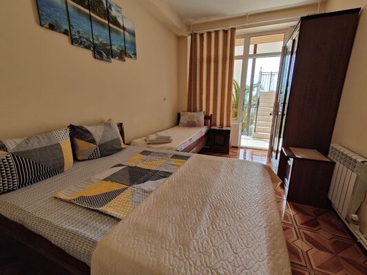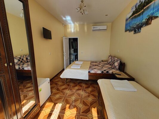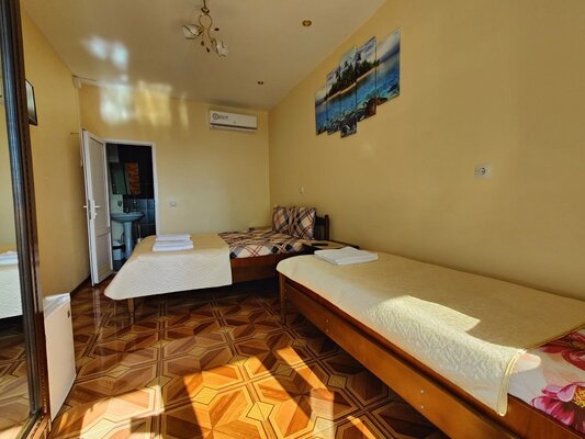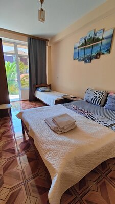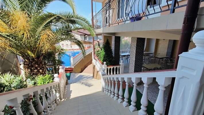 Отдохните в комфортабельном гостевом доме «Сибиряк» в тихом районе Адлера. Всего 16-20 минут неспешной прогулки отделяют вас от моря. К вашим услугам: уютные номера с кондиционерами, собственными ванными комнатами и видом на море, просторная крытая терраса с панорамным обзором, общественная кухня на открытом воздухе, Wi-Fi и парковка. Рядом остановка «Санаторий Изумруд». Центр Адлера — 15 минут на такси, центр Сочи — 40 минут, Сочи Парк — 30 минут.