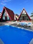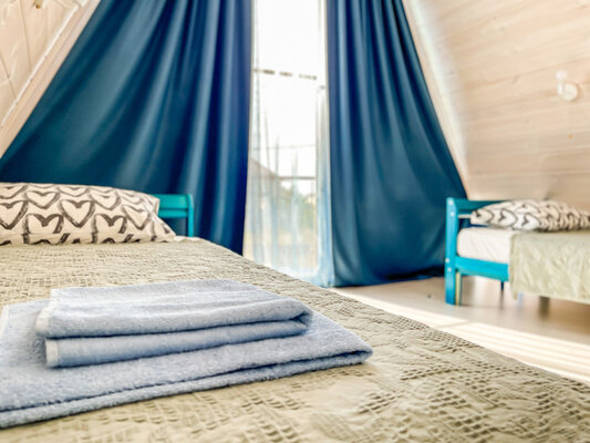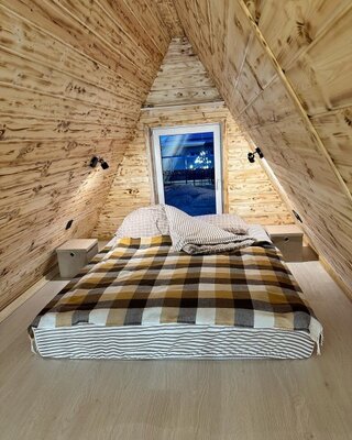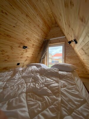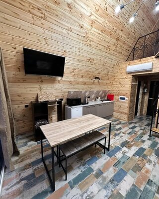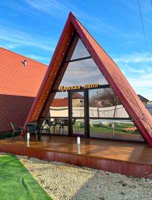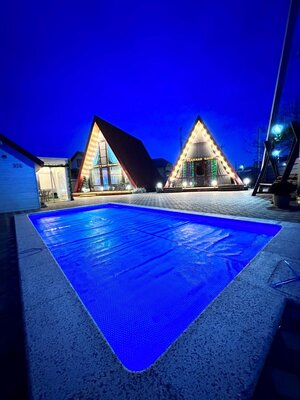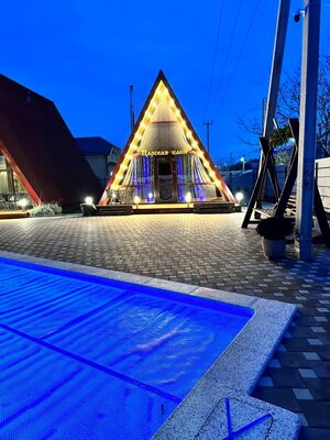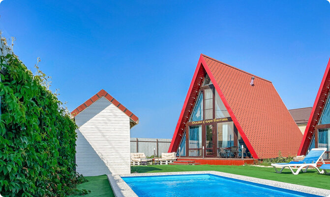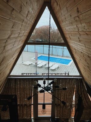 Вас ждут очаровательные домики в стиле A-frame с просторными панорамными окнами, а также просторная баня из канадского кедра с целебным паром. Для приятного времяпрепровождения оборудована уютная беседка с мангалом, а открытый бассейн с кристально чистой теплой водой станет идеальным местом для расслабления.