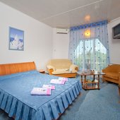 Каждый номер выполнен в индивидуальном интерьерном решении, гармонично сочетающим роскошь с домашним мироощущением. Для вашего комфортного отдыха все номера Гостевого Дома оборудованы удобными двуспальными кроватями, системой кондиционирования, телевизором, мини-баром, посудой, балконом, индивидуальным сейфом. В зависимости от категории номера туалетная комната оснащена ванной или душевой кабиной. При необходимости возможна установка дополнительного места.