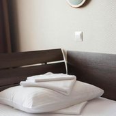 Пятиэтажный корпус отеля, расположенный в 500 метрах от моря, предлагает гостям широкий выбор номеров различных категорий комфортности. Выбирайте на свой вкус: бюджетные варианты с общим санузлом на этаже, стандартные номера, уютные номера «Студио» или комфортабельные Апартаменты с собственной кухней. На втором этаже отеля работает круглосуточная стойка размещения.