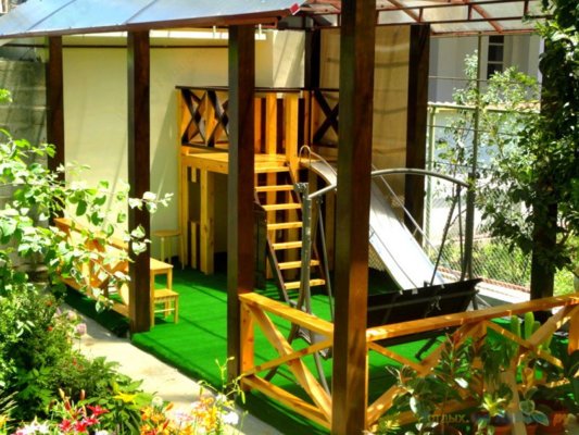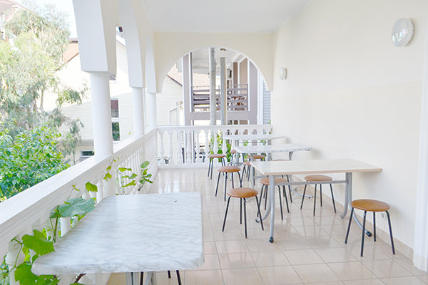 София представляет собой новое трехэтажное, комфортабельное здание с цокольным этажом. Имеется просторная терраса, используемая в качестве кухни, которая оборудована всем необходимым для самостоятельного приготовления пищи.