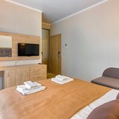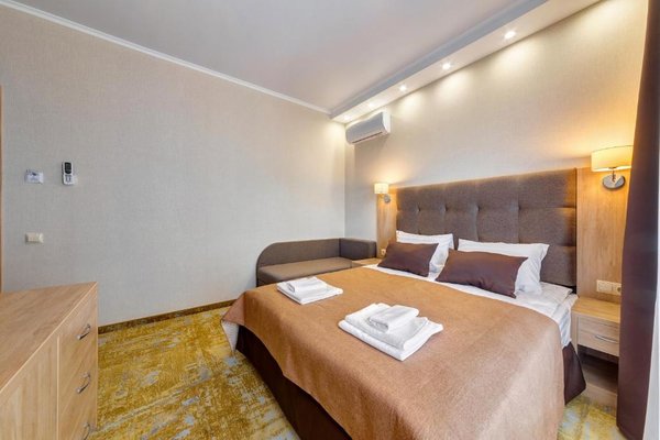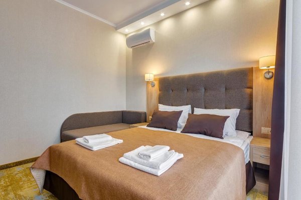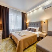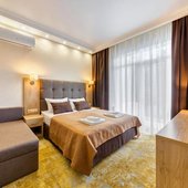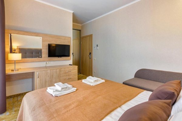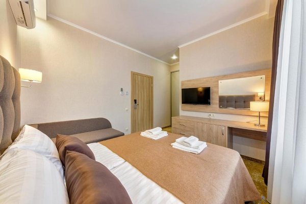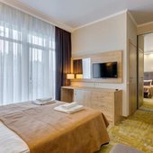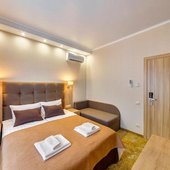 Номера гостиницы укомплектованы современной мебелью, есть телевизор и сплит-система. В бесплатном доступе высокоскоростной интернет в номерах и на всей площади отеля.