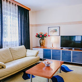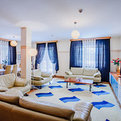 Конференц-зал с экраном и аппаратурой для проведения вечерних мероприятий (70 м²) рассчитан на 80 мест.