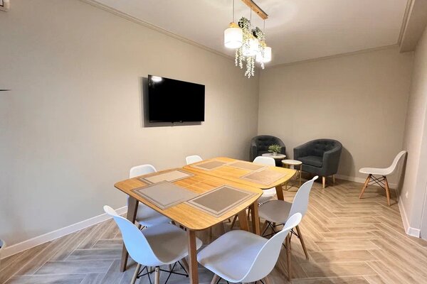 Можно проживать с животными по согласованию (только с собаками до 5 кг) за дополнительную плату.
