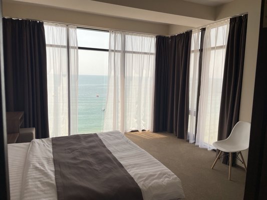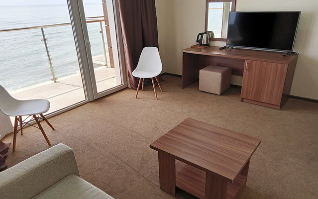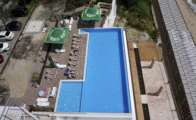 На первом этаже отеля есть круглосуточная стойка регистрации, лобби-бар, детская комната и несколько номеров. Гостям предлагается шведский стол в ресторане и бар на пляже с широким выбором напитков и меню для готовки на мангале. Отличительной чертой отеля является прекрасный бассейн типа "инфинити", в окружении детской площадки, зон для загара и беседок с мангалами. У песчаного пляжа плавный вход в воду, что делает его идеальным для всех возрастов. Гостям предоставляются шезлонги и теневые зонты для комфортного отдыха на пляже.