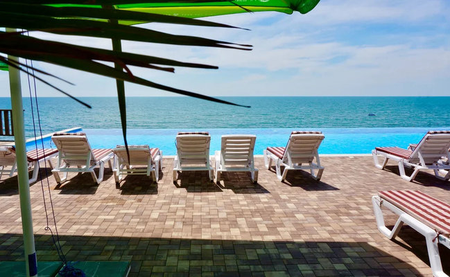 Отель расположен на первой линии берега и имеет свой забором огражденный песчаный пляж. Большинство номеров имеют красивый вид на море.