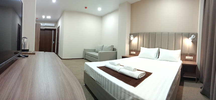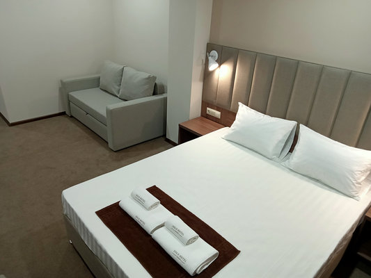 Отель представляет собой высококачественное 6-этажное здание с использованием современных технологий и материалов, включая гипоаллергенные материалы для стен и полов. Отель оборудован лифтом фирмы OTIS и имеет без барьерную среду для гостей с ограниченными возможностями. Также имеется возможность размещения гостей с сопровождающими.