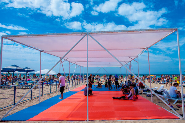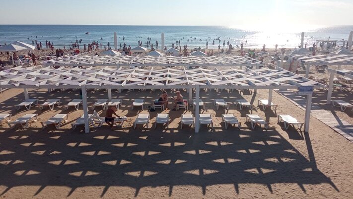 Общая площадь пляжа 5750 квадратных метров — места хватит всем! К вашим услугам удобные лежаки для комфортного отдыха и навесы, которые надежно укроют от палящего солнца.
