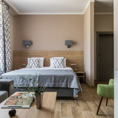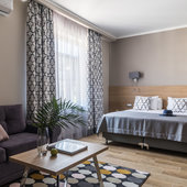 Просторные номера имеют современный дизайн и интерьер. Комнаты обставлены мягкой мебелью, есть кондиционер и телевизор, спальный гарнитур, обеденный стол и стулья, сейф, мини-бар и чайный набор. В ванной комнате установлена душевая кабина, есть фен, полотенца и средства личной гигиены. Доступен Wi-Fi.