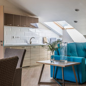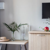 Во всех номерах для питания гостей оборудована мини-кухня. В апартаментах можно приготовить еду самостоятельно. Имеется бытовая техника, плита и посуда. Также вкусно пообедать или перекусить можно в кафе поблизости, где предлагается богатый выбор блюд и напитков.