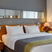 Респектабельный лаунж-бар, выполненный в современном стиле, расположился в самом сердце отеля. За чашкой первосортного кофе или бокалом редкого виски можно неформально поговорить с партнерами, расслабиться после напряженного дня или с прохладным коктейлем под звуки живой музыки начать многообещающий вечер. Лаунж-бар - зона бесплатного Wi-Fi.