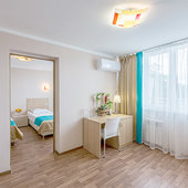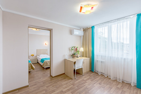 В гостинице большое количество номеров на любой вкус и достаток, с номеров гостиницы открывается прекрасный вид на море и парк гостиницы. Все номера с удобствами, есть одноместные, двухместные, трехместные и четырехместные номера. Питание предусмотрено на любой вкус, вы можете заказать проживание с завтраком, обедом и ужином, дополнительно повара ресторана могут приготовить любые блюда на заказ.
