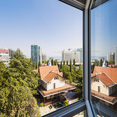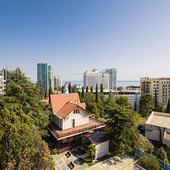 Санаторий расположен в центре города: рядом главная морская набережная курорта и один из красивейших памятников архитектуры Сочи — морской порт.
