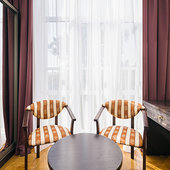 Гостям предлагается двухместное и одноместное размещение в одно- и двухкомнатных номерах первой категории и номерах класса «люкс». Из номеров открывается великолепный вид морского простора.