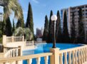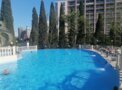 Открытый бассейн: площадь 300 кв. м, вода пресная, подогреваемая, бассейн оборудован теплым выплывом. Большая чаша – глубина 150 см, температура воды 29-30 градусов; малая чаша (детская) – глубина 60 см.