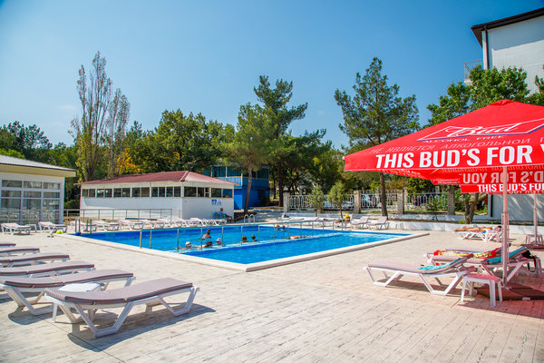 К услугам гостей открытый бассейн, столовая и детская площадка.