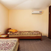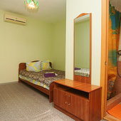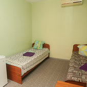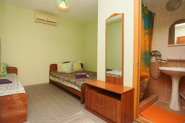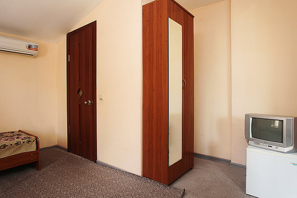 Отдых пришелся на август 2013 года. Ехали автобусом 2 суток до моря. При заселении пришли в ужас. Номер грязный, телевизор плохо работал, кондиционер шумел сильно, комната маленькая, окошко, как иллюминатор, крохотное, жалюзи пыльные, розетки держались на честном слове, постельное не меняли, полотенца на смену отвоевали с трудом. Хозяева уезжают на работу, вместо них остается их несовершеннолетняя дочь - школьница...