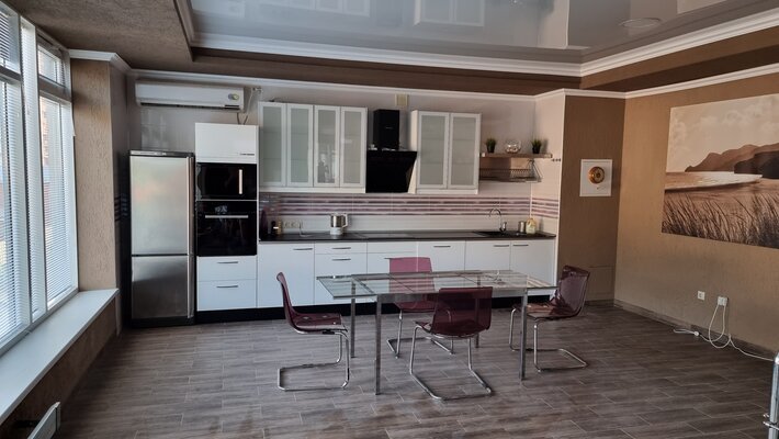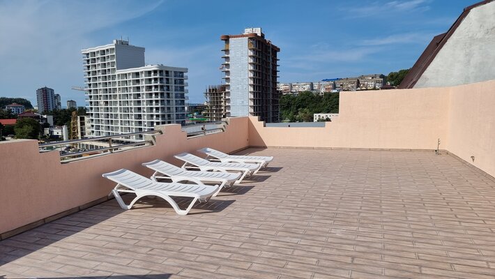 В этом 3-этажном таунхаусе с эксплуатируемой крышей уютно разместится до 10 человек. На крыше установлены 4 шезлонга, где вы сможете насладиться солнцем и свежим воздухом.