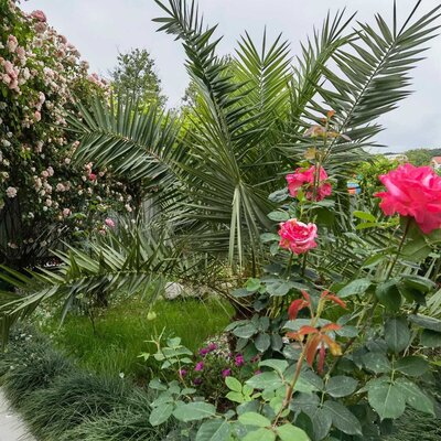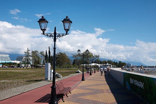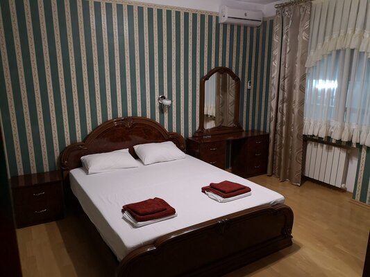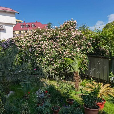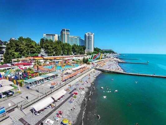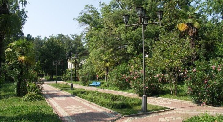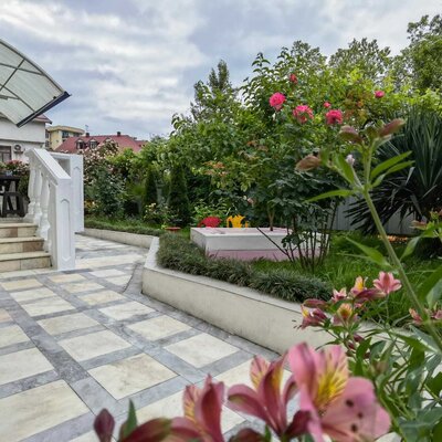 Гостевой дом расположен в спокойном и красивом районе Адлера, всего в 10-12 минутах ходьбы от моря. Чтобы добраться до пляжа, нужно пройти через всесезонный зеленый парк Курортного городка. Пляжи здесь общественные, чистые, оборудованные и покрытые мелкой галькой, которая иногда переходит в песок.