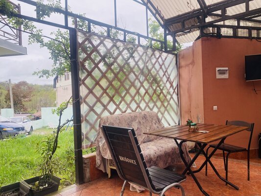 Самолетом до аэропорта г. Сочи, далее на электричке до станции Лоо, затем пересадка на автобус №76,77 до остановки «Нижняя Беранда», далее пройти 500 м до гостевого дома.