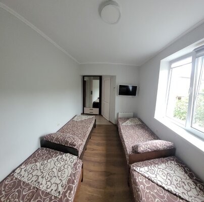 Самолетом до аэропорта г. Геленджика, далее пешком 590 м до остановки «Северный-4», далее на автобусе №5 или на маршрутном такси №16,22 до остановки «Школа № 1», далее 296 м до гостевого дома.