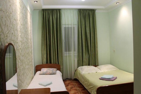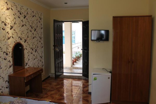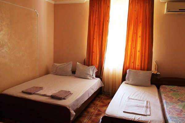 В гостевом доме можно арендовать 2-, 3- и 4-местные номера, каждый из которых оборудован телевизором, холодильником, кондиционером и собственной ванной комнатой с душем. По запросу предоставляются детская кроватка и стульчик для кормления.