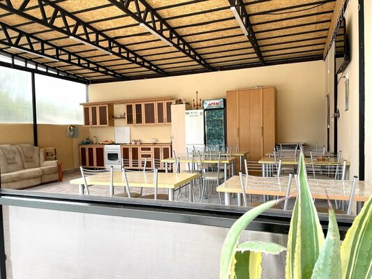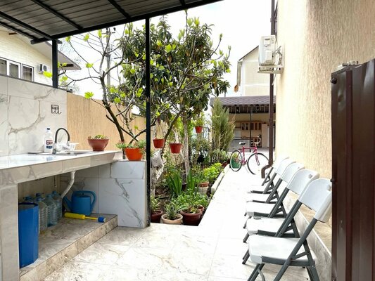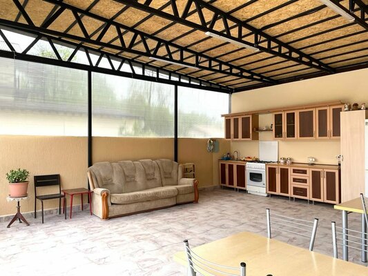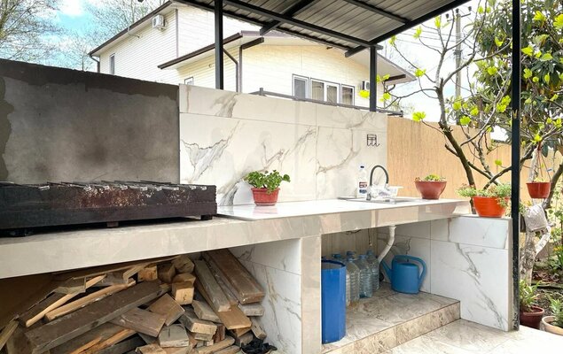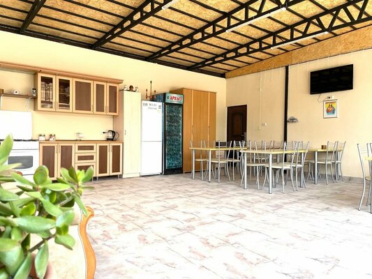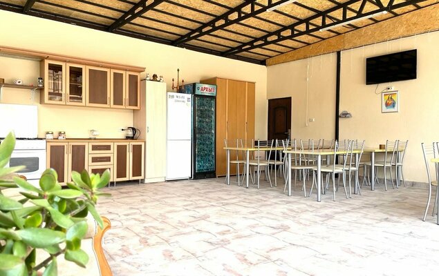 На общей кухне постояльцы найдут всю необходимую посуду и столовые приборы для приготовления еды. Также к услугам гостей — мангал для приятных вечеров на свежем воздухе.